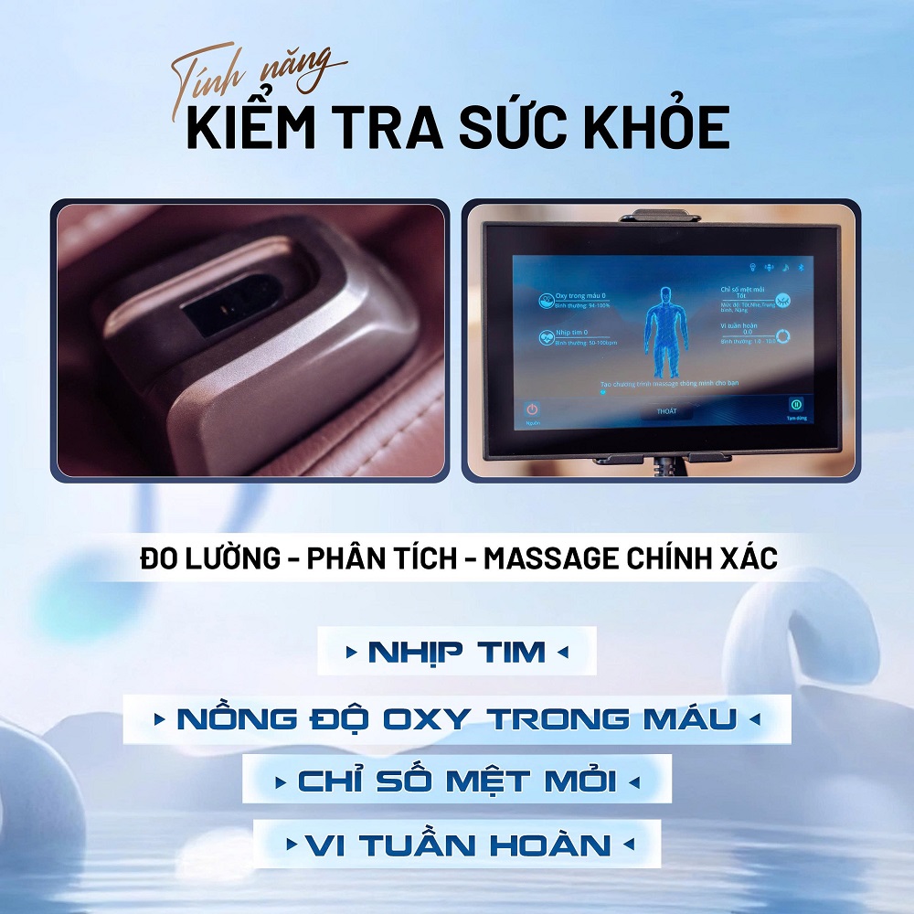 Ghế được tích hợp cảm biến hiện đại để đo các chỉ số cơ thể như: nhịp tim, nồng độ oxy trong máu, mức độ mệt mỏi... Dựa vào kết quả này, ghế sẽ tự đề xuất bài tập phù hợp nhất với tình trạng sức khỏe hiện tại của bạn.