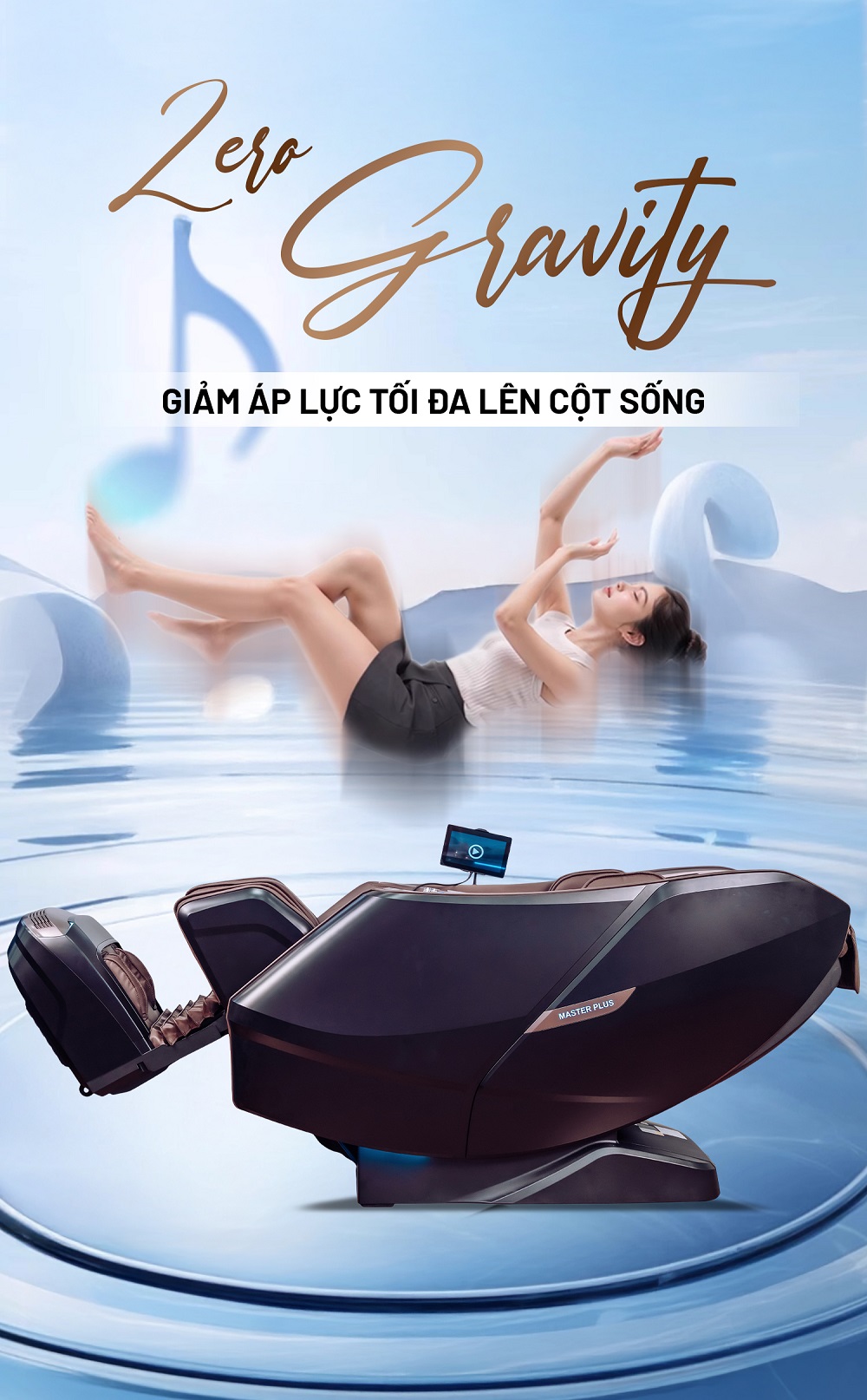 Chế độ massage không trọng lực Zero Gravity đưa cơ thể vào tư thế ngả lưng lý tưởng, giúp giảm tối đa áp lực lên cột sống, tim và phổi. Ở tư thế này, máu lưu thông về tim dễ dàng hơn, tạo cảm giác nhẹ bẫng, thư thái như đang lơ lửng.