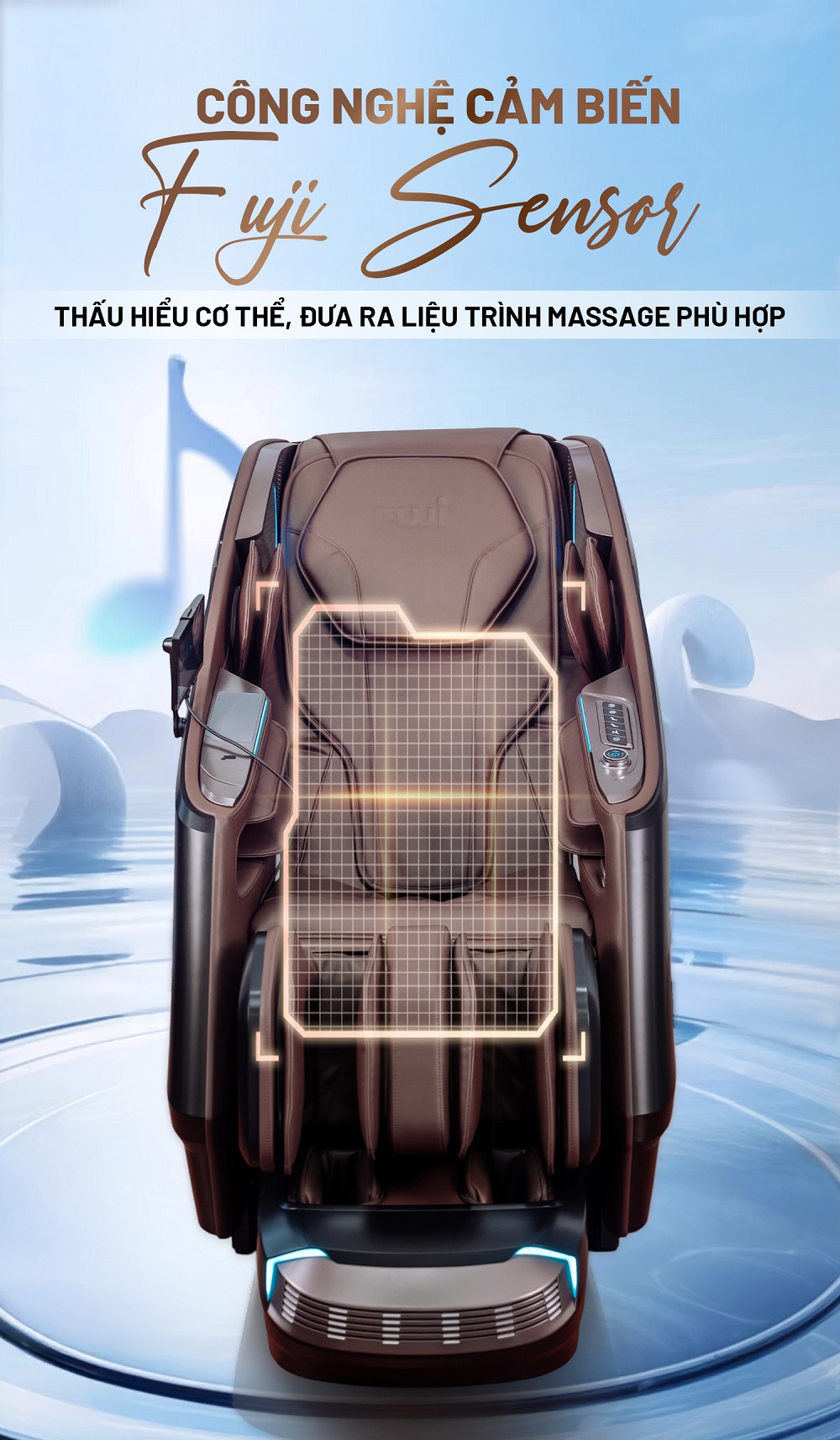 Mỗi người có vóc dáng khác nhau và Fuji Sensor giải quyết vấn đề đó bằng cách quét toàn bộ cơ thể người sử dụng. Ghế sẽ tự động nhận diện và thiết lập liệu trình massage phù hợp nhất với hình dáng của bạn, đảm bảo an toàn và tối ưu hóa hiệu quả thư giãn.